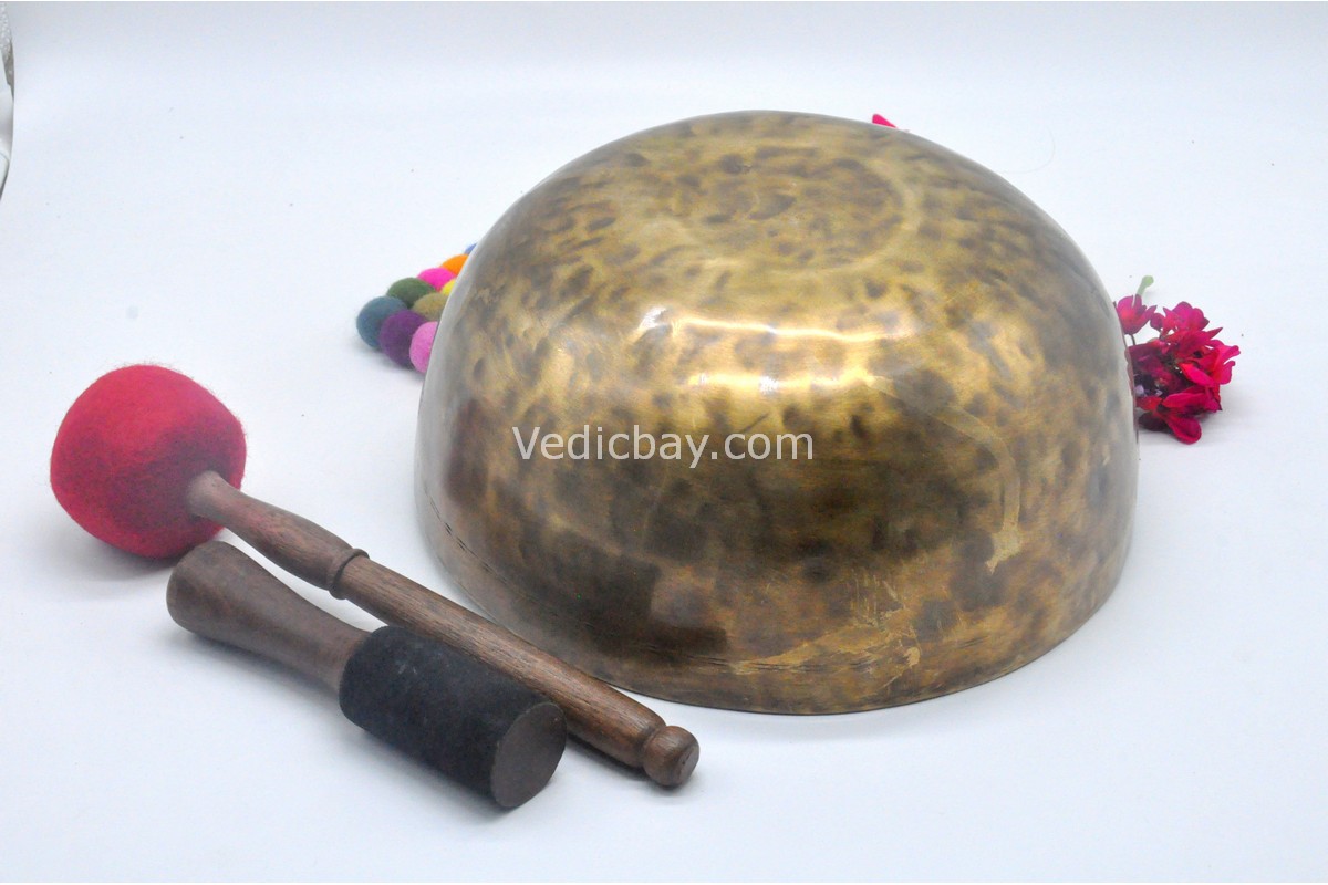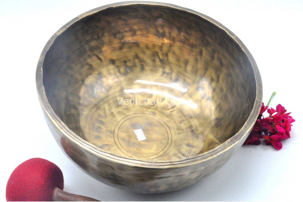 Its thick-walled Jhumka design allows the bowl to produce strong, resonant tones with deep sustain. Because of its large size, this bowl is especially effective for group sound baths, energy cleansing rituals, and advanced meditation practices.