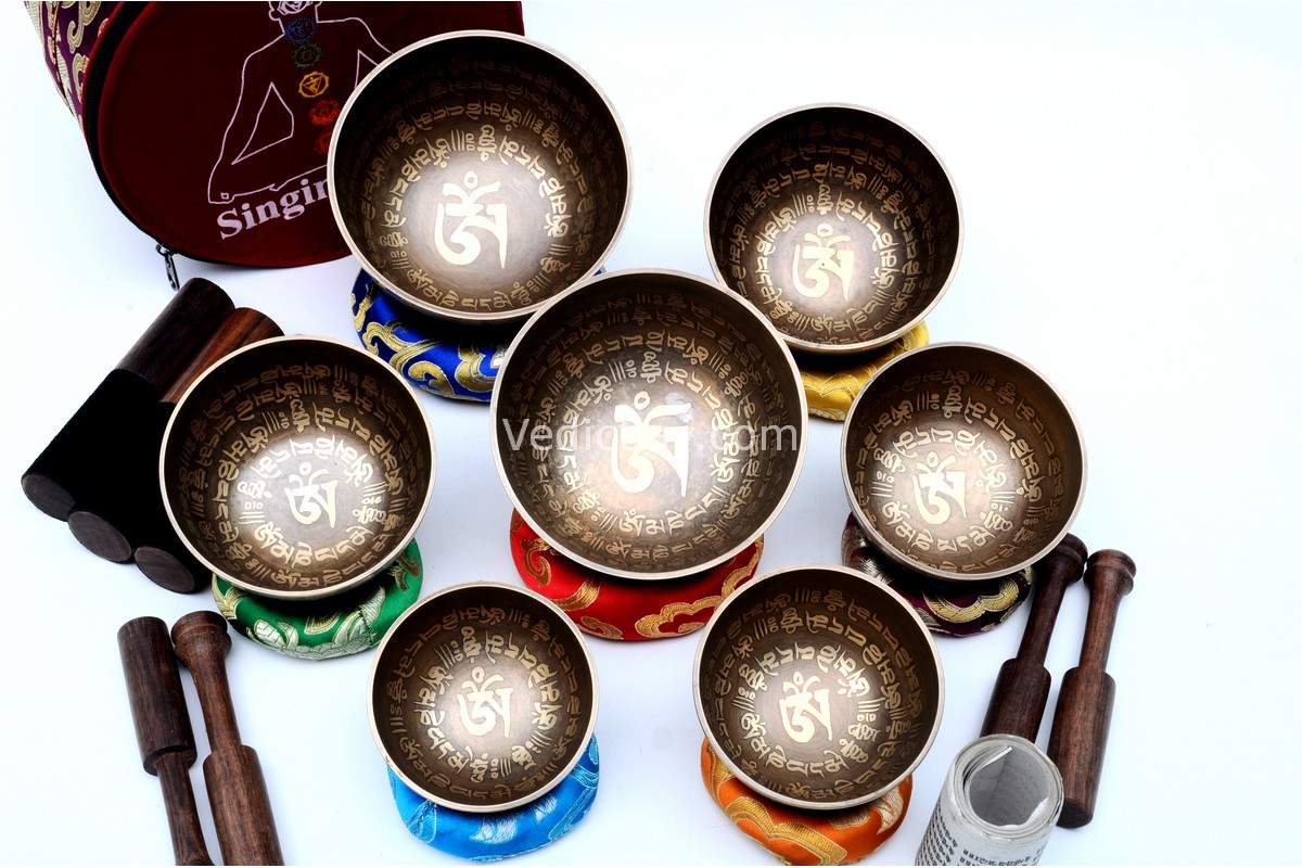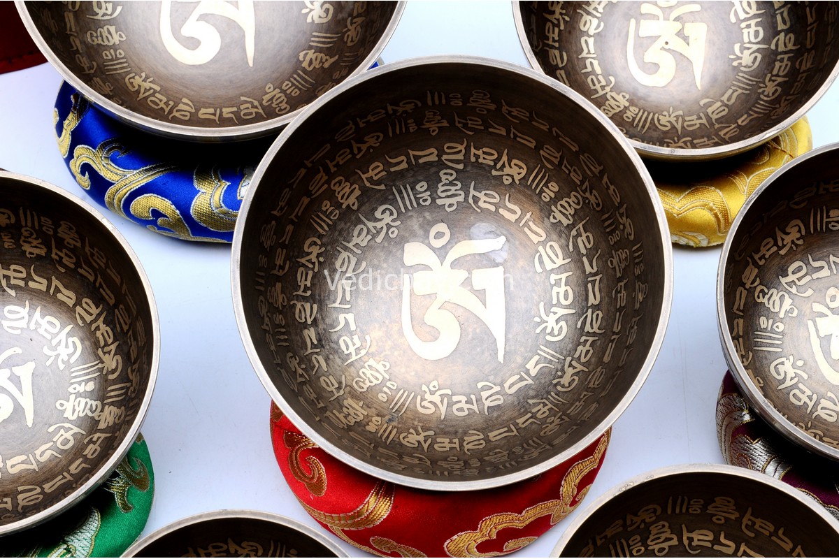 - 7 × Tibetan Mantra Etched handmade singing bowls (2.54 – 5.5 inches)