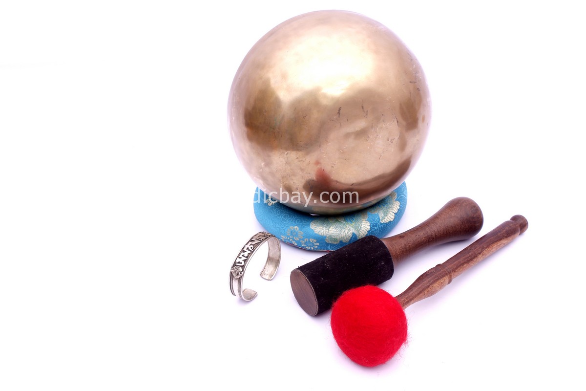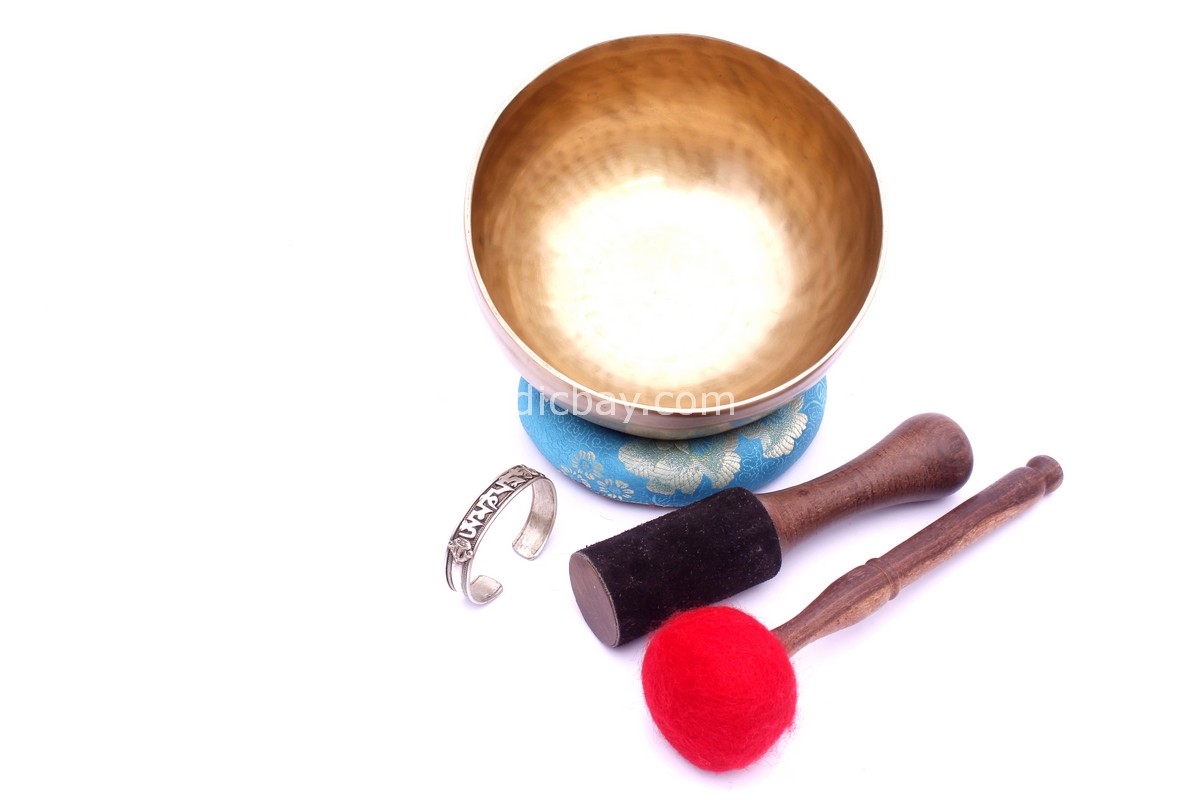 Each singing bowl is individually handmade, so minor differences in tone, texture, and weight make every piece unique. However, these natural variations ensure authenticity and character. Your bowl will arrive with a mallet, felt drum striker, cushion, and a complimentary Tibetan bracelet—therefore, you will have everything you need for immediate use.