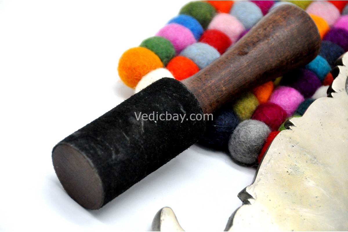 - Includes: Wooden striker and metal spinner