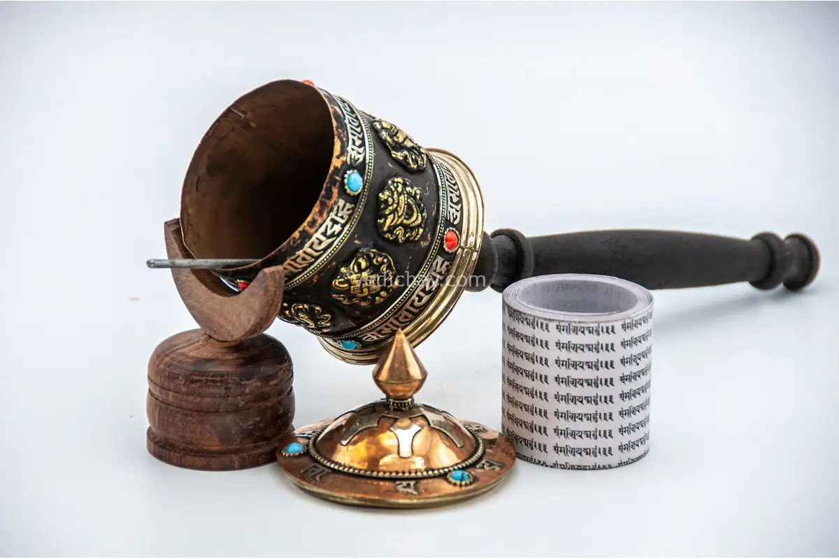 Please note, as each piece is individually handcrafted, minor differences in design or finish may be present. These variations make every prayer wheel truly one of a kind.