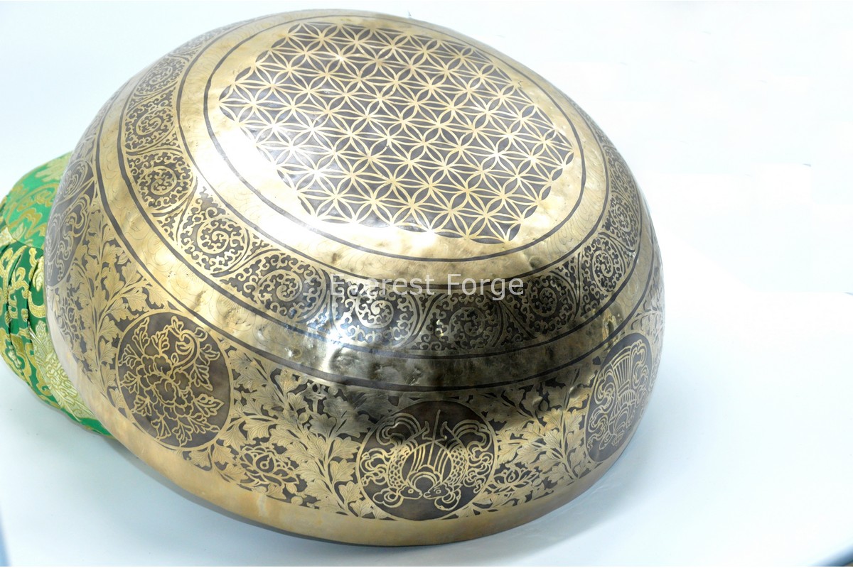 Large Seed of Life Mandala Singing Bowl – Tibetan Mantra – Flower of Life – Handmade in Nepal