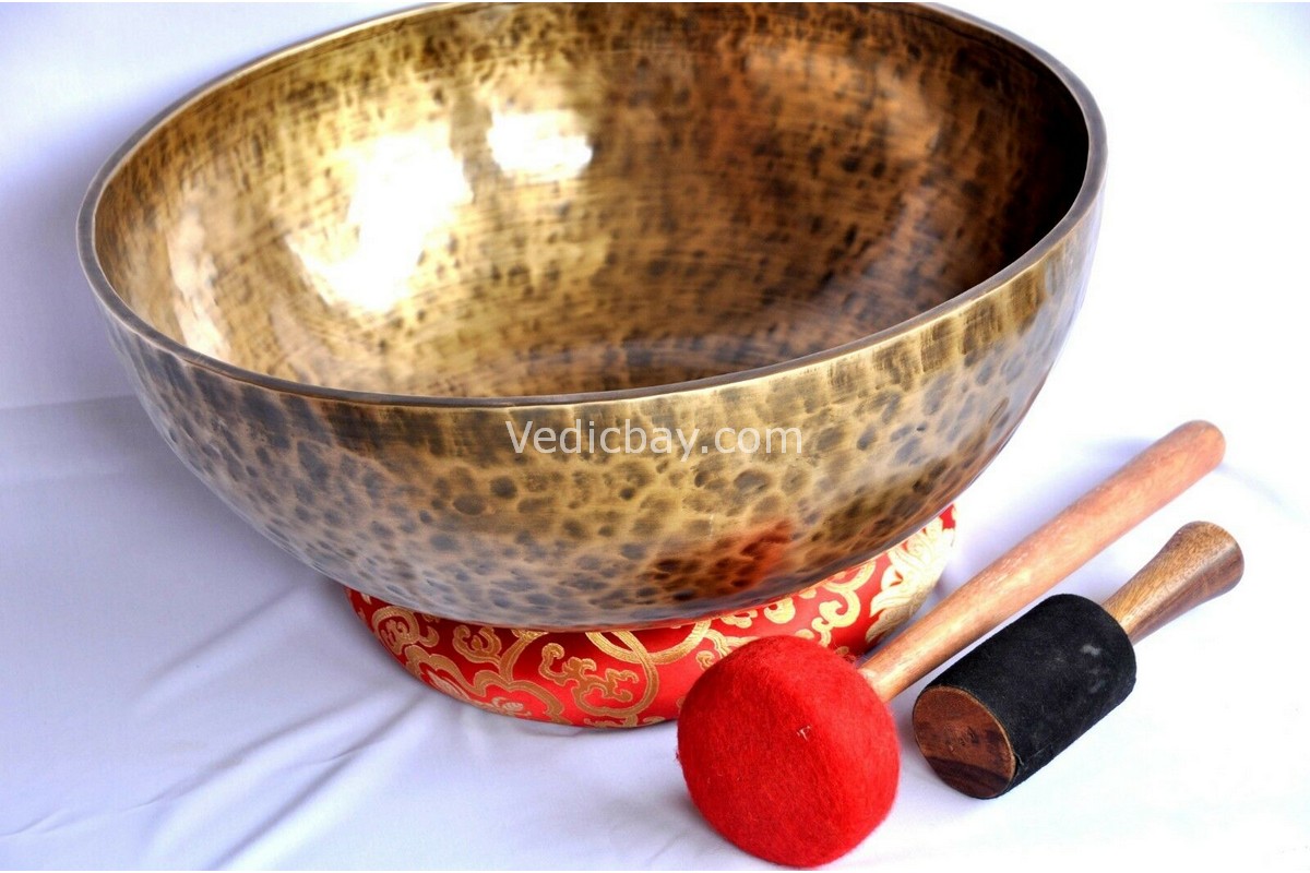 - Large antique-finished singing bowl – handmade in Nepal from 7 sacred metals