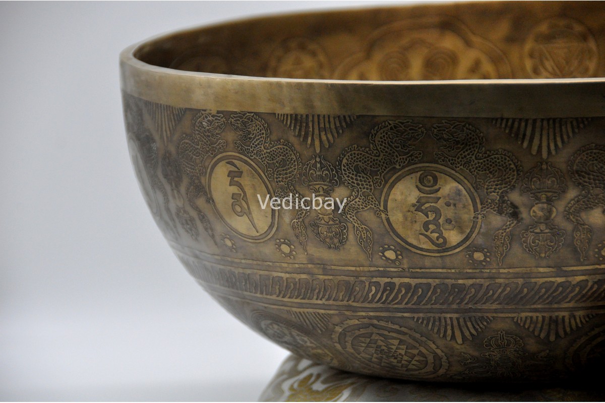 Large Chakra Yogi Singing Bowl – Ashtamangala, Seven Chakra Symbols & Vajra