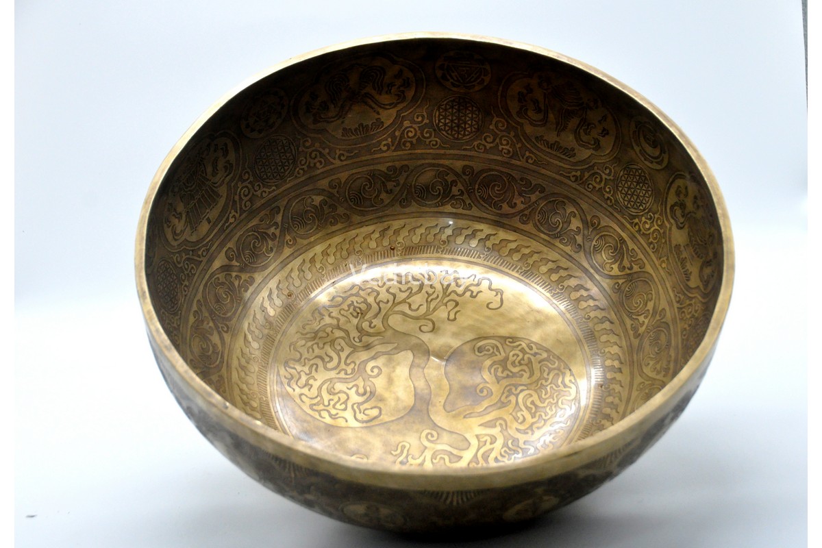Large Tree of Life Singing Bowl – Yin Yang Center – Chakra Healing Yoga Bowl – Handmade in Nepal