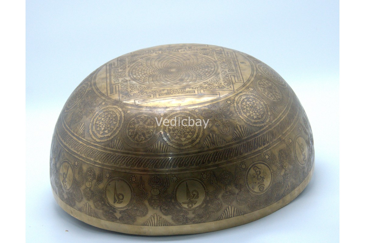 Large Foot Carved Singing Bowl – 7 Chakras & Shree Yantra – Hand-Hammered Sound Healing Bowl from Nepal
