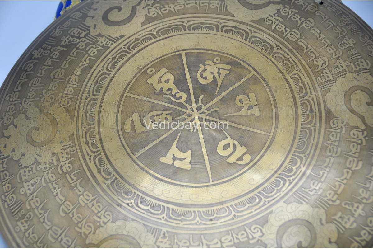 Full Tibetan Mantra Etched Gong for Chakra Healing and Meditation β Handmade in Nepal