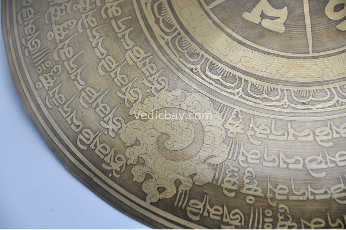 Mantra Carved Tibetan Gong for Chakra Healing and Meditation β Handmade Temple Gong