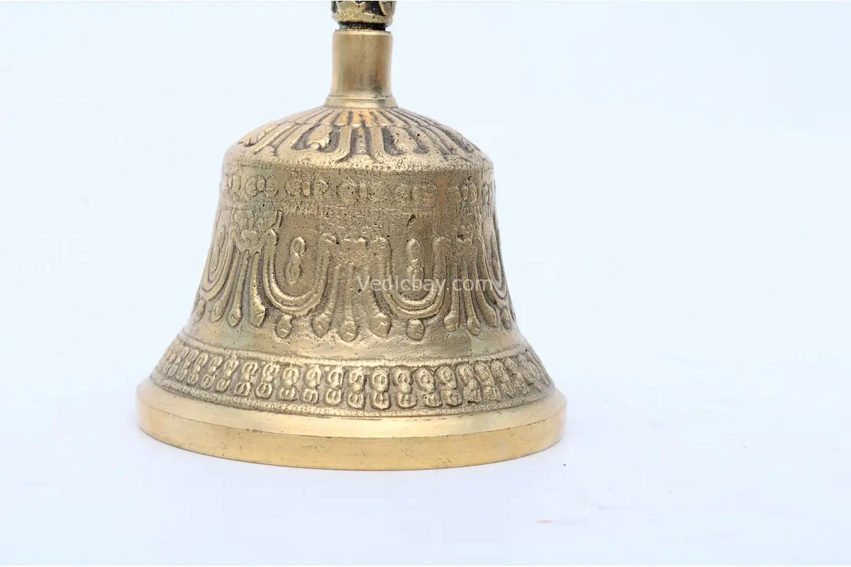 In Tibetan Buddhist ritual, the bell symbolizes wisdom, while the dorje represents compassion and action. When used together, they harmonize dual energies and are essential tools in tantric and meditative practice. The brass finish adds a touch of sacred brilliance and ceremonial beauty.