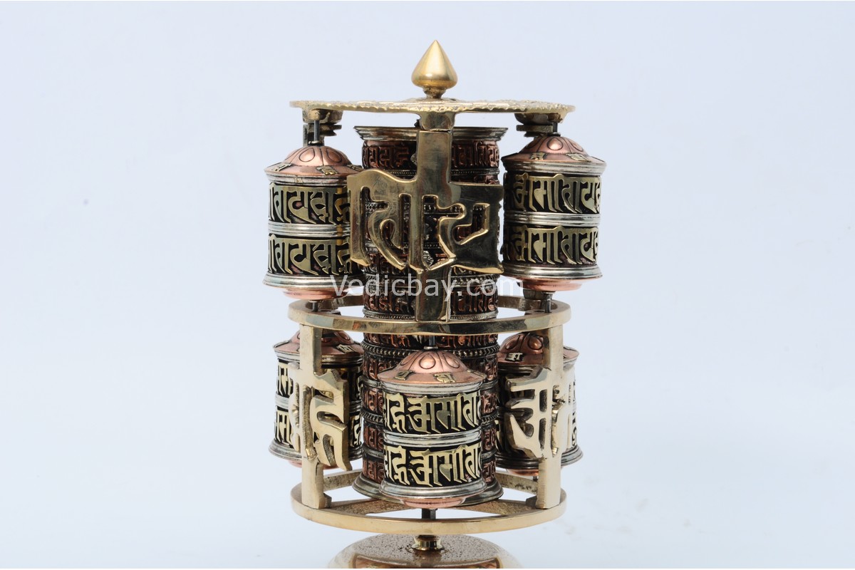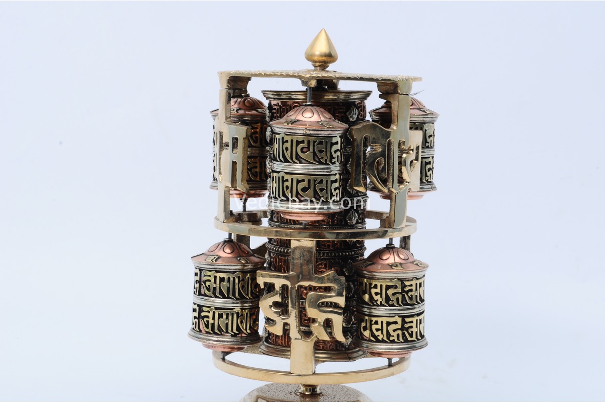 • Design: 7 prayer wheels with embossed mantras and Austamangal symbols
