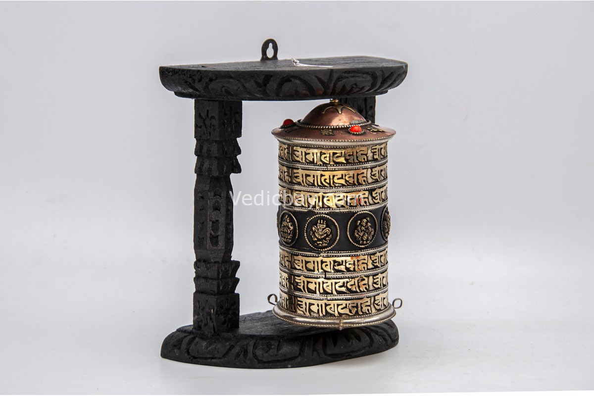 Wall Hanging Tibetan Prayer Wheel – 7.5 Inch – Austamangal Embossed