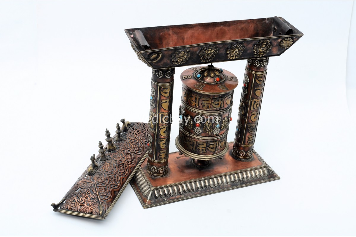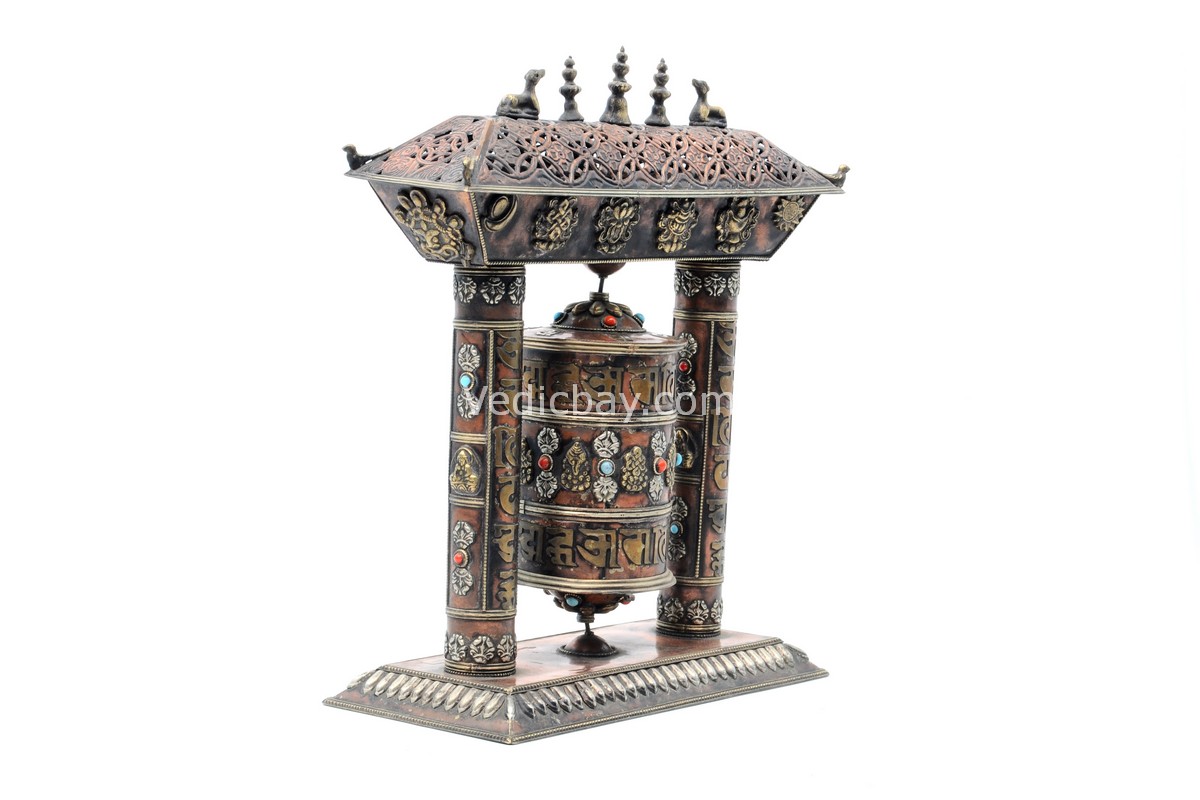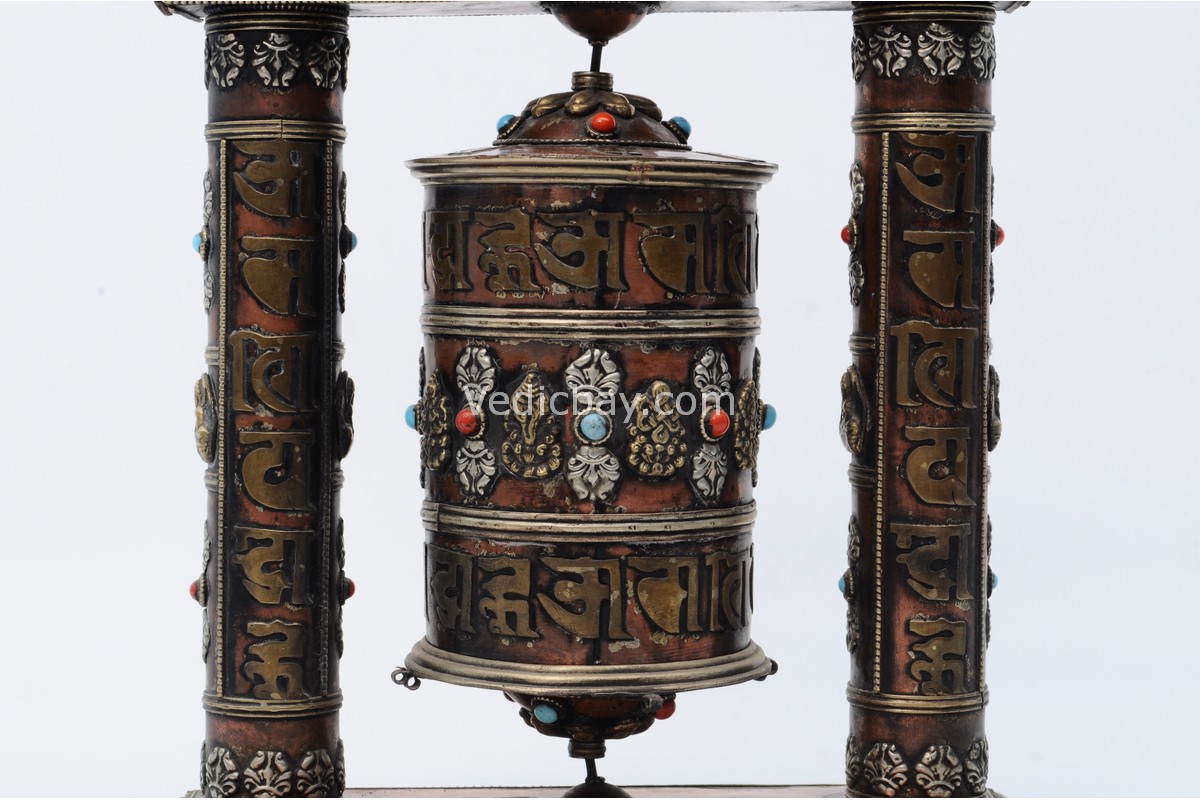 - Mantra: Om Mani Padme Hum embossed on the wheel