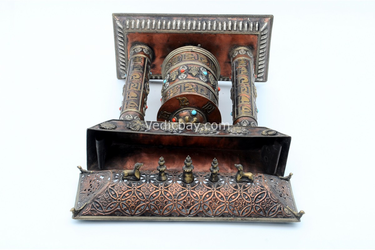 - Material: Copper wheel and frame, brass mantra